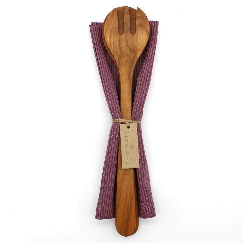 | Beschreibung | Geschirrtuch aus 100% Baumwolle - 40x60cm und Salatbesteck ( 35,5x7cm ) aus Kirschholz |